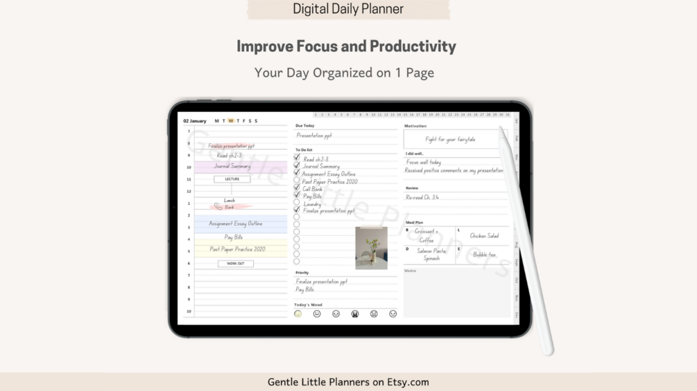 -This planner has been designed to be used on note-taking apps such as GoodNotes or Notability on an iPad/Tablet with Apple Pencil/stylus. Such apps are not included in this purchase. You can download them from App Store.